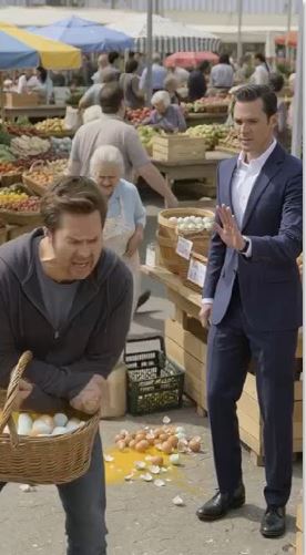 But he wasn’t listening. With one careless motion, Ricky grabbed a basket of eggs and slammed it down. The shells burst across the pavement, yolks spilling like golden tears.