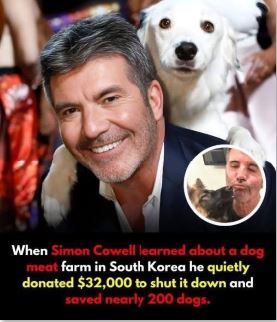 In 2018, Simon Cowell quietly donated $32,000 to shut down a dog meat farm in South Korea, rescuing nearly 200 dogs from cruel conditions. Animal welfare groups provided care and adoption for the frightened animals. Cowell’s compassionate act saved lives, raised global awareness, and highlighted the growing movement against dog meat farms, proving that individual action can make a profound difference.