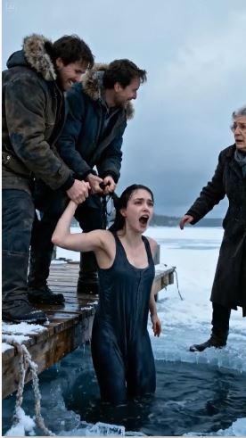 Mia surfaced, gasping, her face instantly turning a ghostly white from the shock of the freezing water. The cold shock response was immediate; I could see her struggling to inhale. “Brad! Help! It’s freezing! I can’t breathe! My legs… I can’t feel my legs!”