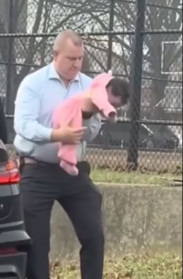 Greaney reached into the car, took the baby girl wearing a pink onesie, and hit her back to clear her airway. The baby began breathing again within moments. A pediatrician who saw the scene stopped and checked the child and confirmed she was okay.