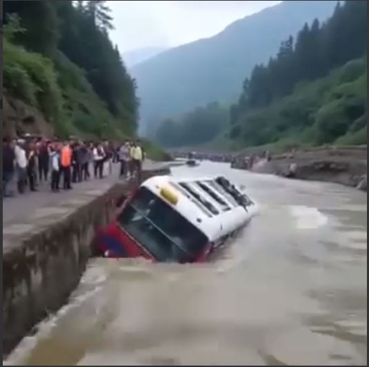 A routine day turned into a nightmare when a bus was suddenly swept away by a raging river. Without warning, the powerful current dragged the vehicle under, leaving bystanders horrified and helpless as panic and screams filled the air.