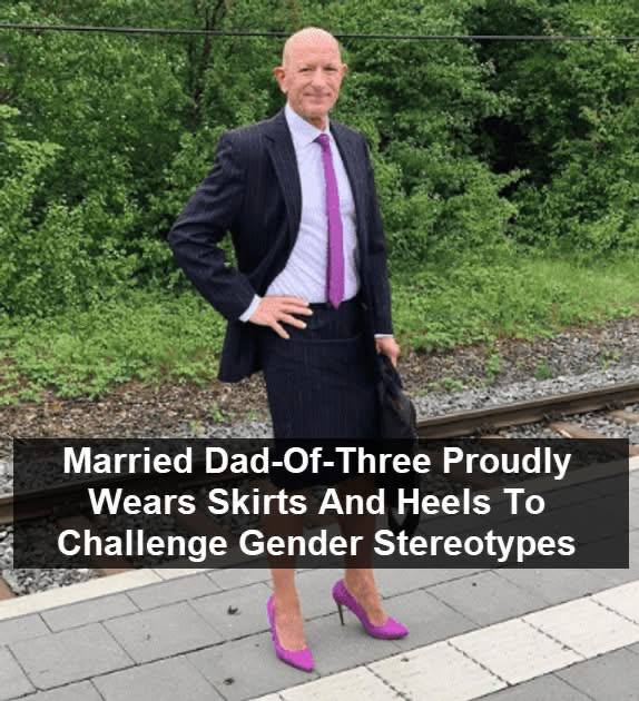 The 63-year-old robotics engineer says he wears a skirt and heels to work and when he is out on the town. He even wears them at home.