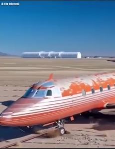 Inside, the jet showcases Presley’s signature style with plush crimson velvet seats, wood-paneled walls, and a vintage TV set, creating a retro-luxury feel. A small kitchen in the back, complete with an old microwave, adds a personal touch, evoking the image of Elvis preparing his famous peanut butter, banana, and bacon sandwich.