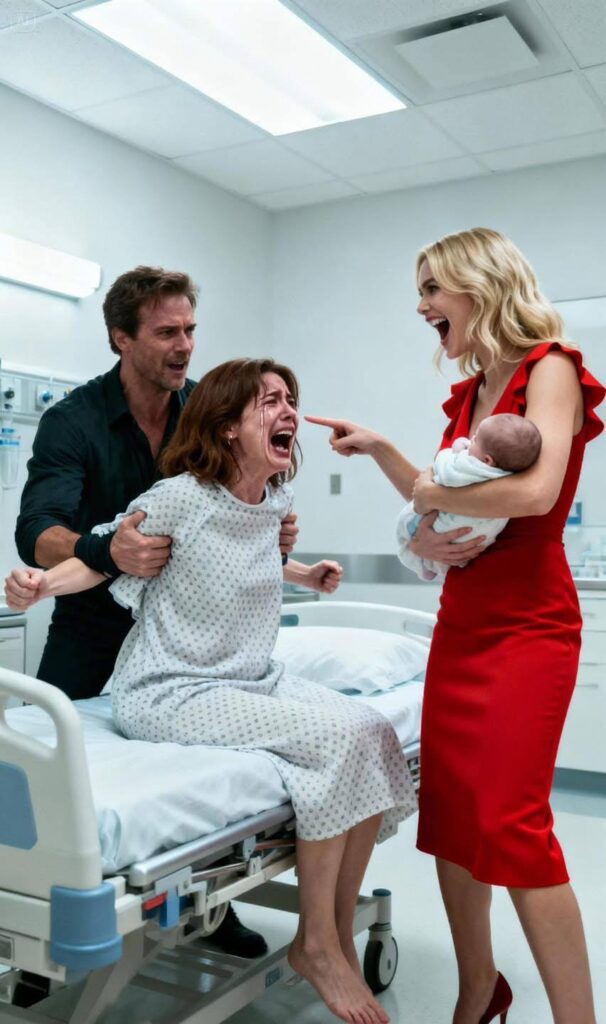 “Give him back!” I screamed, adrenaline flooding my exhausted system. I clawed at the bedsheets, swinging my legs over the side of the bed.