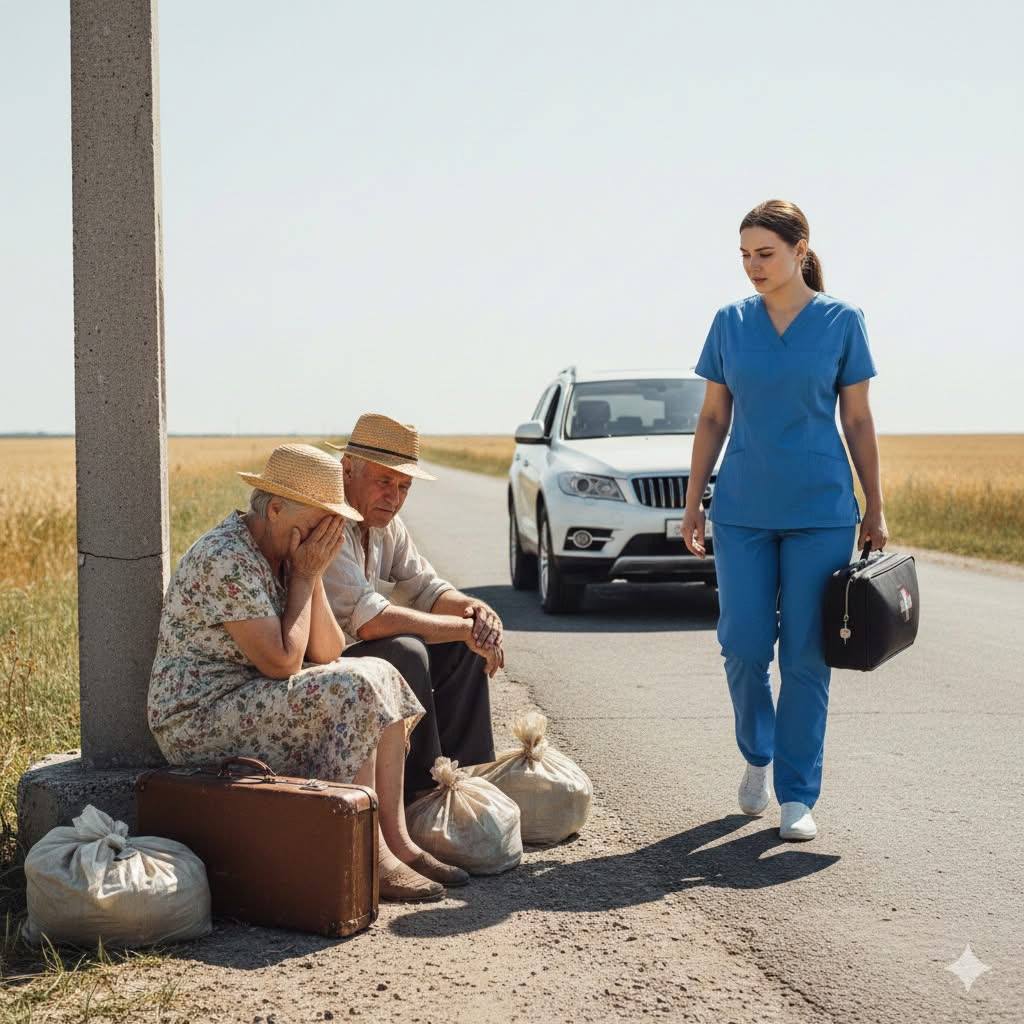 I pulled over and got out of the car. Dust rose with each step. As I got closer, I could see their faces clearly: the woman’s eyes were red and swollen, and dried tear marks were visible on her cheeks. The man stared intently at the road, as if he could find the answers to everything in the scorching asphalt. I spoke softly, afraid of startling them: “Good morning… are you both alright? Do you need any help?”