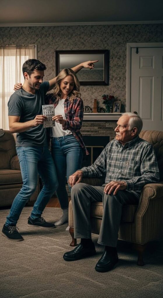 “No, he’s right,” she said, her voice hardening as she clutched the ticket to her chest. “This changes everything, Dad. We can finally live our own lives. We’ll find you a nice assisted living place. Somewhere… appropriate.”
