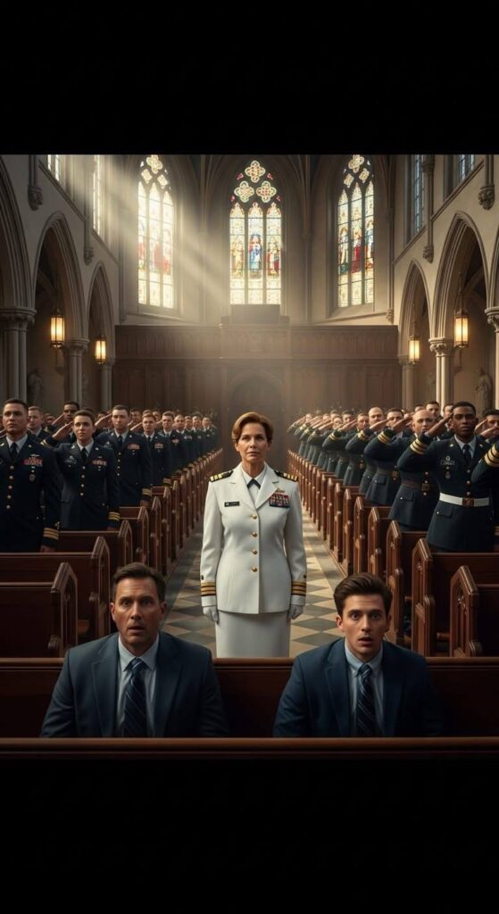 The chapel was filled with the soft echo of the organ. Then came a new sound: boots striking stone, sharp and deliberate. Two SEALs entered, their uniforms immaculate, and took their places at the front like statues.
