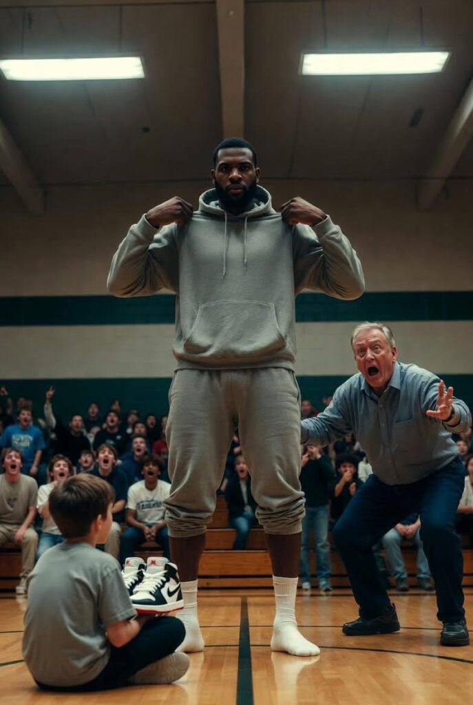 He had been there since the beginning, a solitary figure sitting in the highest, darkest row of the bleachers, away from the chatter of the other parents. He was massive, a mountain of a man, easily six-foot-six. He was draped in an oversized gray hoodie with the hood pulled low, obscuring his face in shadow. He had been silent, a statue witnessing the sins of the arena.