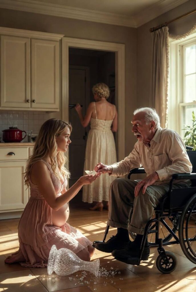 His eyes were wide, pleading, filled with a terrifying urgency that stopped my breath. He didn’t look at the broken glass. He didn’t look at Martha’s retreating figure. He looked directly at me. His left hand, trembling violently, reached out. He wasn’t trying to help me clean. He was reaching for my hand.