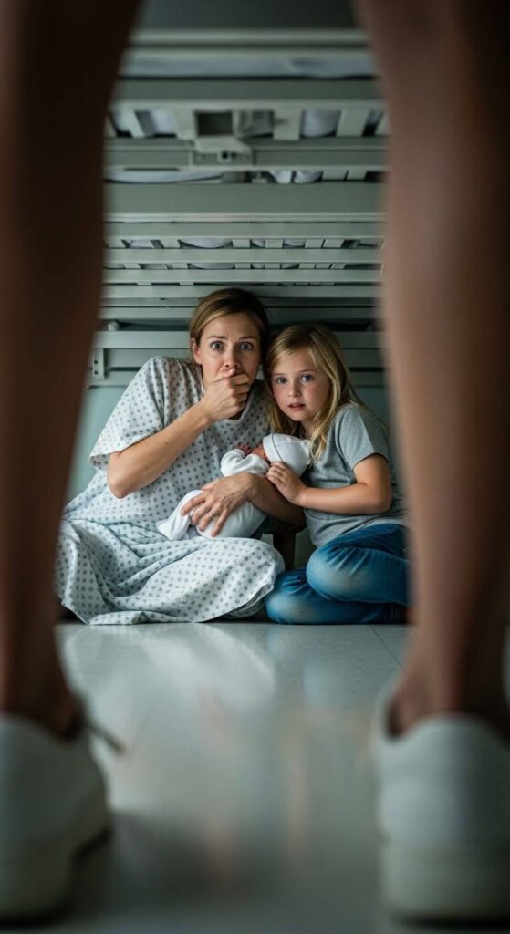 It was agony. My stitches burned as I slid off the mattress, dragging the IV pole down with me, praying the line wouldn’t rip from my vein. I curled into a ball on the cold linoleum, clutching my newborn son to my chest. Lily scrambled in beside me, her small hand clamping over her own mouth to stifle her breathing.