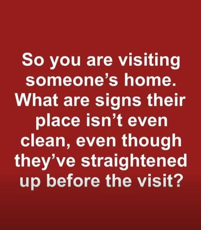Shiny countertops from a quick wipe can deceive, while dust along shelves, baseboards,