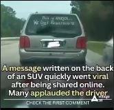 The scribbled phrase on the SUV — “This is America… we don’t redistribute wealth — we earn it” — turned a random highway encounter into a national Rorschach test. To those applauding in the Reddit thread, the driver wasn’t just a commuter; he was a symbol of grit, self-reliance, and the belief that no one is owed a cent they didn’t fight for. Their praise dripped with frustration at what they see as a growing culture of entitlement and “freeloaders” demanding rewards without sacrifice.