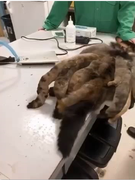 an alien-like creature due to the thick mats covering her body. She was taken to the Animal Rescue League Shelter