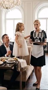 The dinner continued with low murmurs of dirty deals and the soft clinking of cutlery. A young waitress approached to pour wine. Her brown hair was pulled into a tight ponytail, her uniform a little too big. Her hands trembled slightly—understandable, with Victor Romano watching her every move.
