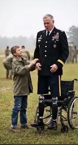 Instead, they watched as General Whitaker rolled forward, locked his wheels, stood—no bars, no straps—just a cane and a boy’s steady hand.