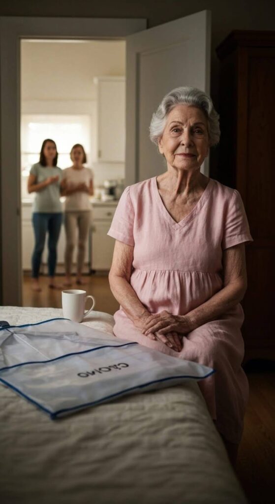 My heart didn’t race. It slowed. I backed up, quiet. The soles of my slippers made no sound on the hardwood. As I returned to the room they let me stay in—they called it the “guest room”—I closed the door softly behind me. Not to hide, just to protect something that had been peeled open too fast. The tea in my mug had cooled. I set it down on the dresser, the same dresser where I kept my folded nightgowns, my vitamins, a framed picture of Paige when she was seven, grinning with no front teeth.