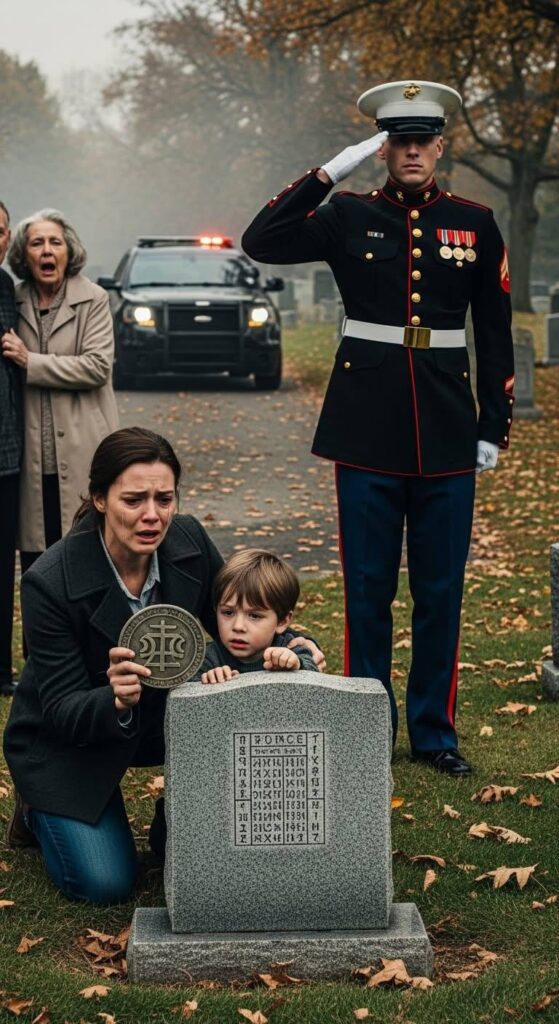My late husband’s family called him an “office worker” with a “dead-end life.” While visiting his grave, my son touched a strange symbol on the headstone. Suddenly, a man in a full military dress uniform appeared behind us, saluted the grave, and said, “Ma’am, the code is active. We have to go now.” What he told me next about my husband’s real job made my in-laws’ world crumble…