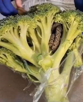 meal—not a fright. Three days after purchase, he unwrapped the plastic and froze in shock: a live snake was coiled inside the broccoli stems.