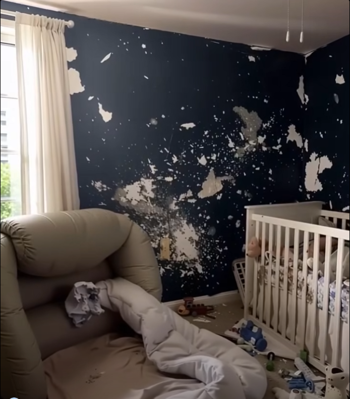 The walls were painted navy blue, blackout curtains hung over the windows, and my mother’s crib lay dismantled on the floor.