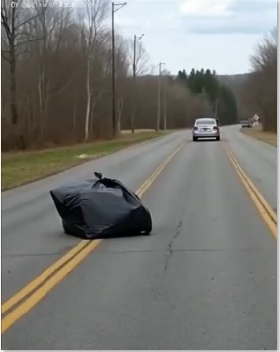 As he drew closer, he noticed the rear door of the car crack open, and in a flash, something was tossed onto the roadside. The door slammed shut, and the vehicle sped off into the misty rain.