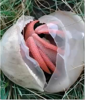 fungus emerges from an egg-like sac, spreading bright red tentacles that reek of decay to attract flies, which spread its spores.