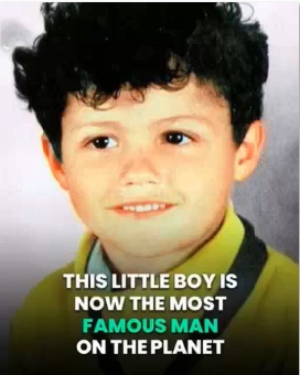 The image shows a shy, wide-eyed boy from Madeira, Portugal — far from the confident global superstar fans know today.
