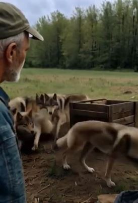 He shut off his tractor and lit a cigarette, eyes fixed on the tree line. The low, haunting chorus of movement made his heart skip. Wolves? Packs hadn’t been seen here in decades. Yet there they were, gray figures circling something on the ground. Not prey. Not a carcass. Something wooden.