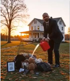 Elise drove to the country house to tend the garden. She found Thane’s car parked near the shed—unexpected. As she approached, she heard the unmistakable smell of gasoline. There he was, pouring liquid over photographs, preparing to set them ablaze.