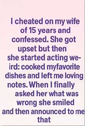In the days that followed, she continued with small acts of kindness. She made my favorite meals, left gentle notes on my coffee mug, and still asked if I needed anything before leaving for work. On the surface, it looked like forgiveness, yet there was a quiet distance in her eyes — a calm I couldn’t quite understand. I wondered if her tenderness was love, exhaustion, or the strength of someone preparing to walk away.