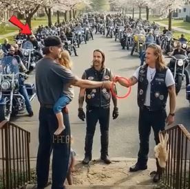 A few nights later, Adam heard it—the low rumble of motorcycles. First faint, then thunderous. Forty bikes lined the street, chrome flashing under dawn light. He froze, shielding Lily.