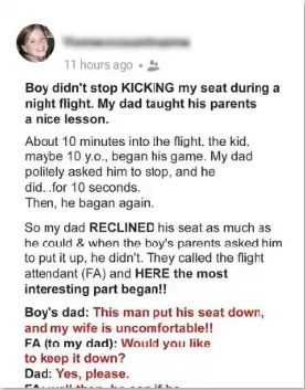 At first, he handled it politely. He leaned back and asked the boy’s parents if they could help him stop. They smiled and agreed, and for a few brief moments, peace returned. But soon, the thumping started again, louder this time, like a small drumbeat behind my back. My dad stayed composed, never raising his voice. Instead, he took a deep breath and quietly came up with a plan so subtle it made me want to laugh.