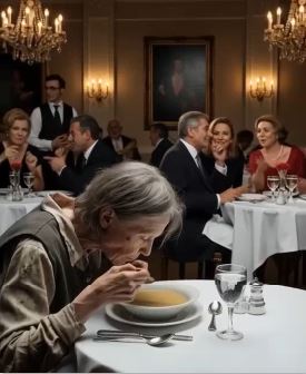 On a quiet corner table, someone sat alone with a bowl of garden broth. They had everything they needed—including dignity.