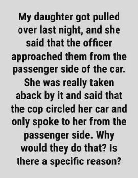 Once you’re stopped, notice how the patrol car is parked slightly off-center behind you. That angle isn’t random — it creates a protective space, shielding both vehicles from passing traffic. Some officers even turn their wheels outward as an extra safety measure. As they approach, you may see them briefly touch the rear of your car. This small gesture serves two purposes: it confirms the vehicle hasn’t been tampered with and leaves a fingerprint for documentation, linking the officer to that specific car for accountability and safety.