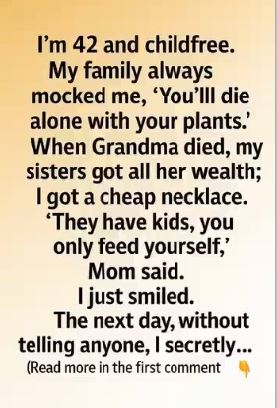 I didn’t tell my family right away. Instead, I went to the garden my grandmother once loved and sat beneath her favorite apple tree. The air smelled of soil and sunlight, and for the first time in a long while, I felt peace rather than pressure. I thought of my mother’s words, my sisters’ laughter, and the unspoken rules about what a “fulfilled life” should look like. There was no resentment — only quiet gratitude. My inheritance wasn’t about proving worth; it was about being reminded that a life well-lived can take many shapes.