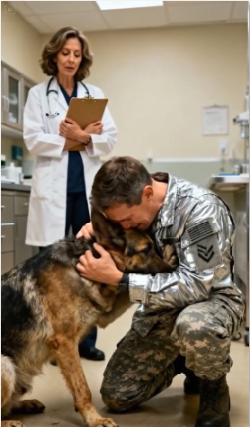 At 10:14 A.M., Staff Sergeant Marcus Chen entered Room 3, carrying his eleven-year-old German Shepherd, Rex. The old dog was wrapped in a sun-faded military blanket — his once-strong body now fragile but still proud.