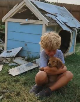 Days later, Mason came home in tears. Buddy’s little house had been torn apart, the blanket soaked in mud, and Buddy was gone. We searched frantically until we found him hiding, scared but safe. Pieces of the broken blue house lay near Mrs. Henderson’s fence.