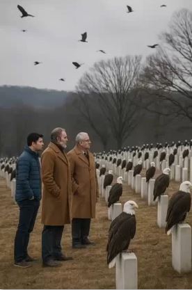 No one moved. Each eagle perched gracefully, wings tucked in, as if guarding the fallen heroes. Children clutched their parents’ hands. Tears flowed freely. Nature itself seemed to honor the soldiers in a silent, powerful tribute.